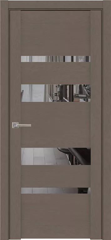 Глухое полотно двери разбавлено стеклянными вставками по всей высоте. Завершенный образ модели придают ровные, не рельефные наличники и выполненная в едином стиле фурнитура.