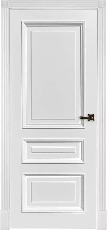 Контрастная фурнитура и рельефный карниз с капителями дополнят и без того изысканный внешний вид дверей.