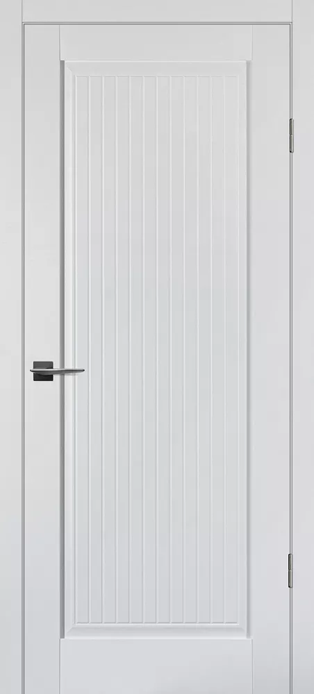 Царговое полотно, выполненное в гладком матовом покрытии, приятным на ощупь, обладающее высокими эксплуатационными характеристиками. Бескромочная технология.###-line-###Полотно комплектуется объемной филенкой с фрезерованным рисунком под рейку . В остекленных полотнах используется рифленное стекло с красивым прокатным узором в виде полос. Отлично смотрится в неоклассических и лофтовых интерьерах.